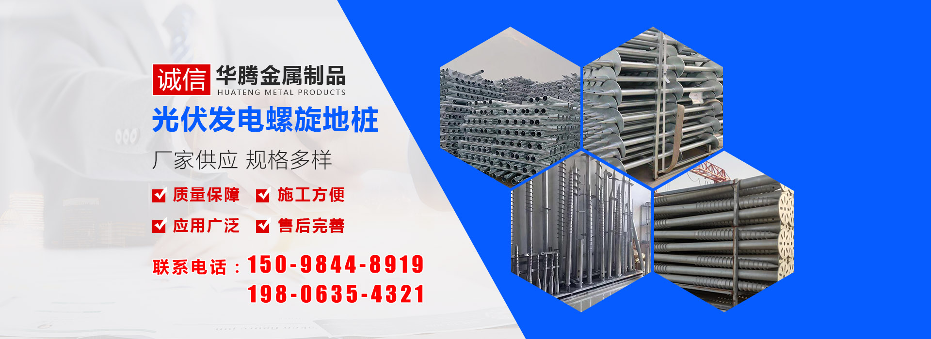 華騰金屬制品 (山東) 有限公司是螺旋地樁定制銷售公司,主營(yíng)光伏螺旋地樁、光伏地樁等產(chǎn)品所生產(chǎn)的光伏螺旋地樁品種規(guī)格齊全,并可根據(jù)客戶的需求、圖紙、樣品研發(fā)產(chǎn)品。多年來(lái)我們以優(yōu)良的服務(wù)及高精端產(chǎn)品贏得了國(guó)內(nèi)外廣大客商的贊譽(yù)及肯定,光伏螺旋地樁等產(chǎn)品廣泛應(yīng)用于光伏太陽(yáng)能電站樁基、房屋建筑樁基、...…